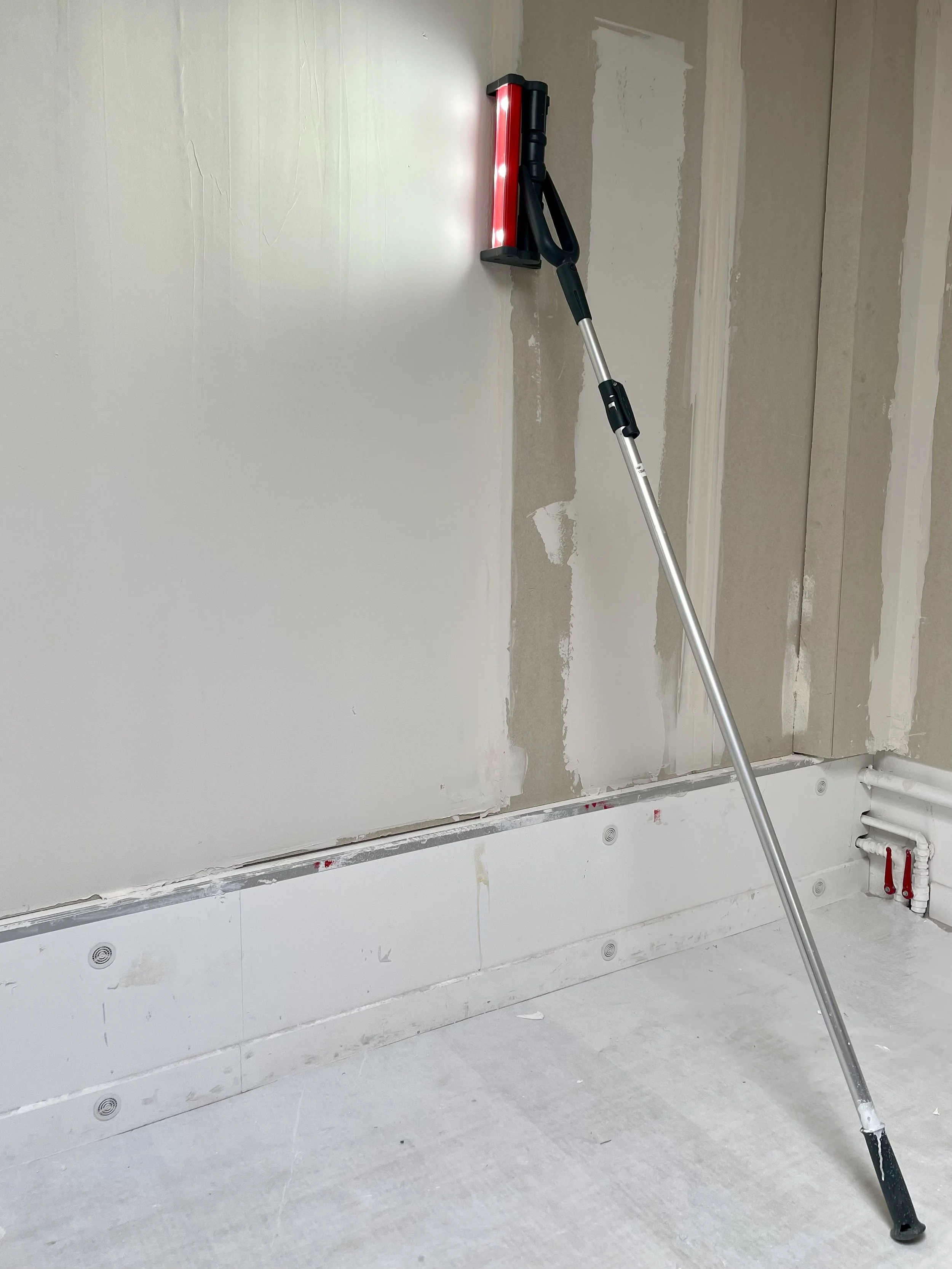 Mit der LED Flächenstrahllampe sieht man besser und arbeitet daher besser. Schon beim Auftragen sieht man sofort Unebenheiten. Beim Schleifen sieht man wo Hand angelegt werden muss.